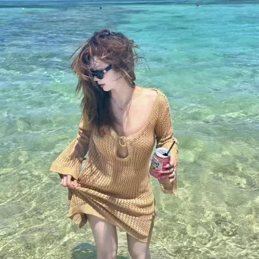 デザイン:透かし編みニットワンピース、ビキニスタイル