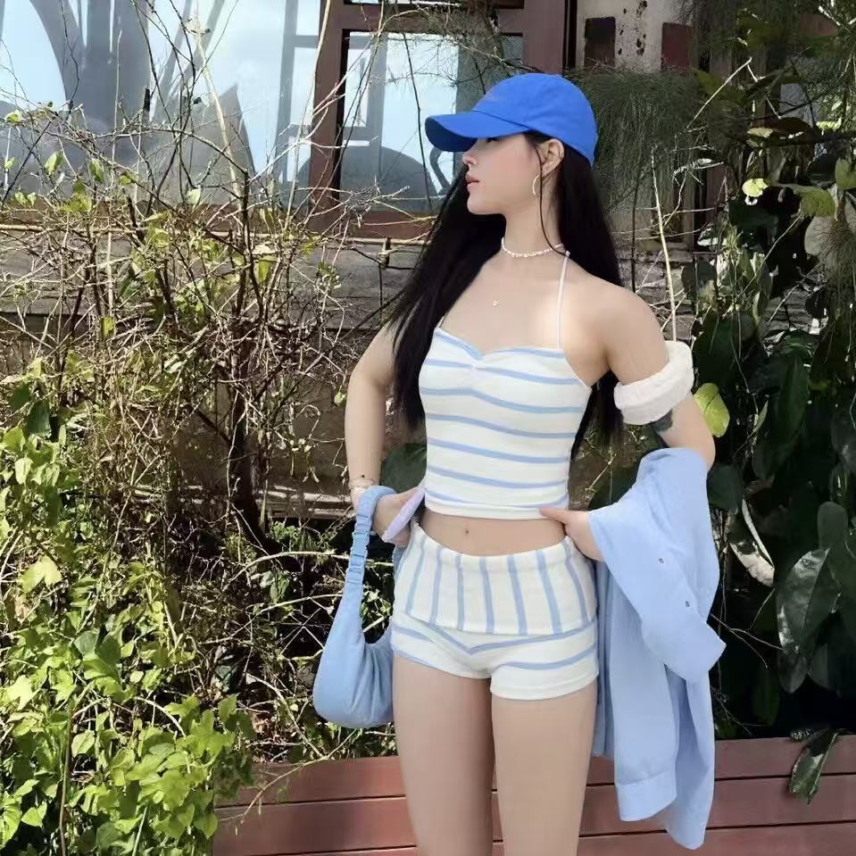 新作 韓国風ビキニ ホルターネック ボーダー柄 淡色女子 高見え フォトジェニック 海外ガール リゾート 温泉