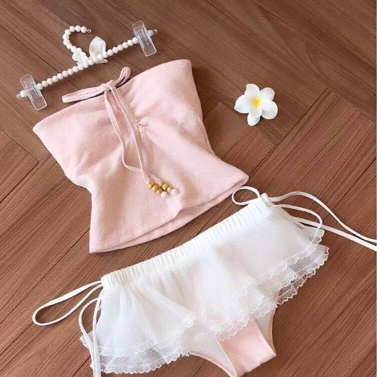 バレエ風ビキニ 3点セット チューブトップ あざと可愛い ガーリー 甘めコーデ 映え水着 リゾート 海 温