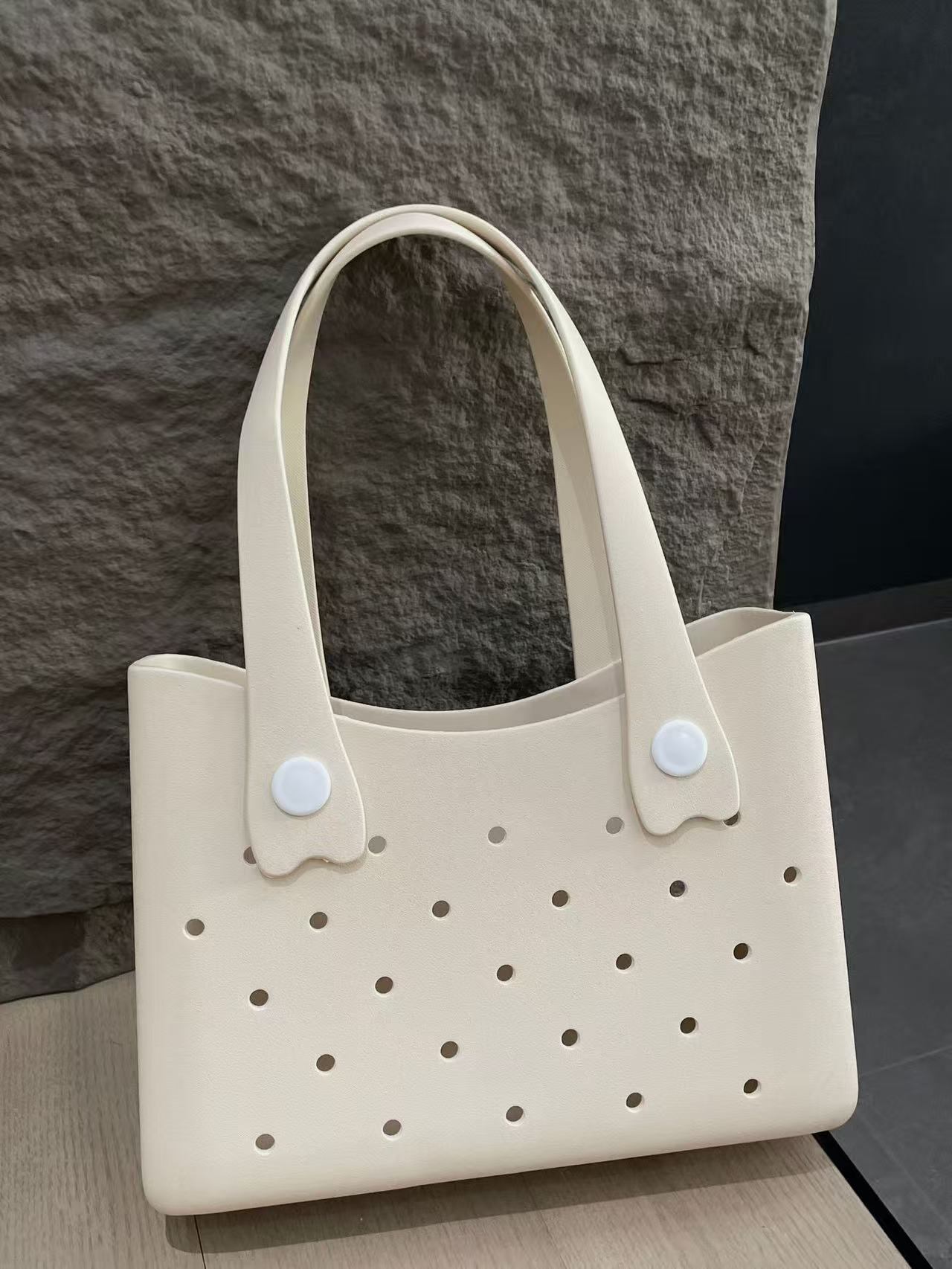 「韓国風 新作 EVAバッグ DIYデコ 穴あきデザイン カートゥーン 可愛い 防水 ショルダー・ハンドバッグ」は、毎日のスタイルに新しい魅力をプラスするアイテムです!軽量でありながら防水機能を備え、デザインは見る人の心をつかむ可愛らしさにあふれています。穴あきデザインは個性的で、DIYデコレーションも楽しめるため、自分だけのオリジナルバッグに仕上げることができます。